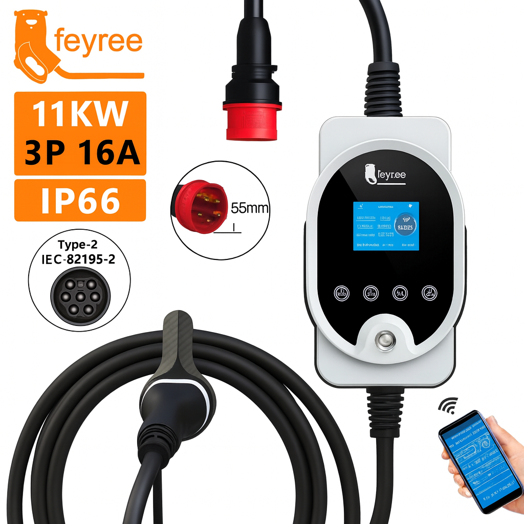 Feyree Typ 2 Portables EV Ladegerät 11 kW, 16 A, 3-phasig mit App-Steuerung